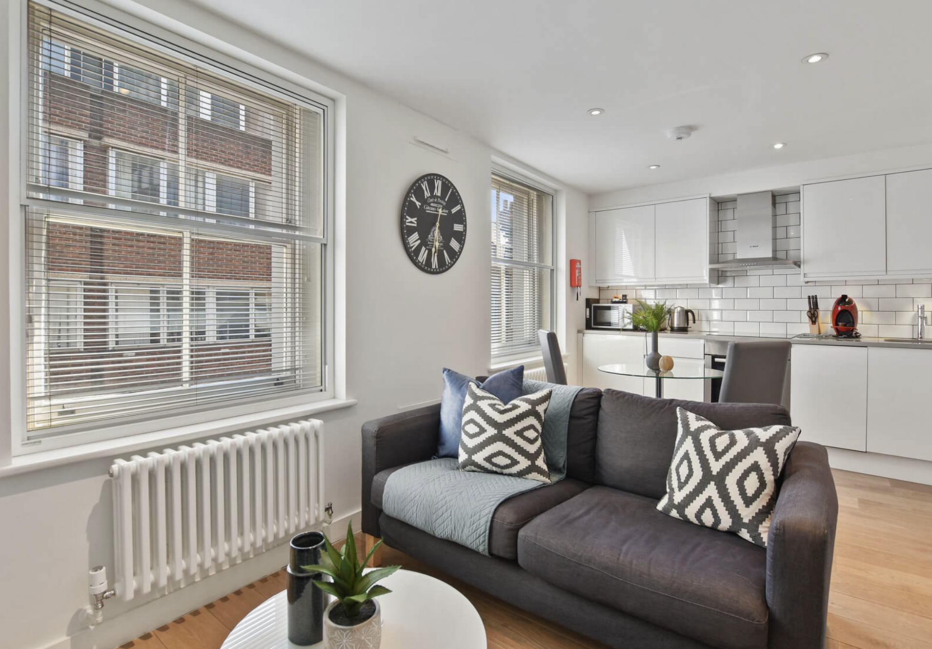 Stylish 1 and 2 bedroom serviced apartments in the heart of London’s West End. Just moments from Oxford Street, Covent Garden, Piccadilly Circus and the theatres of Shaftesbury Avenue. Each apartment has a spacious living area, fully equipped kitchen with dishwasher/dryer, and weekly housekeeping – perfect for business or leisure stays. The area has several hundred restaurants, as well as lots of special eateries, coffee shops, cafes, small independent shops, cinemas, casinos and much more.