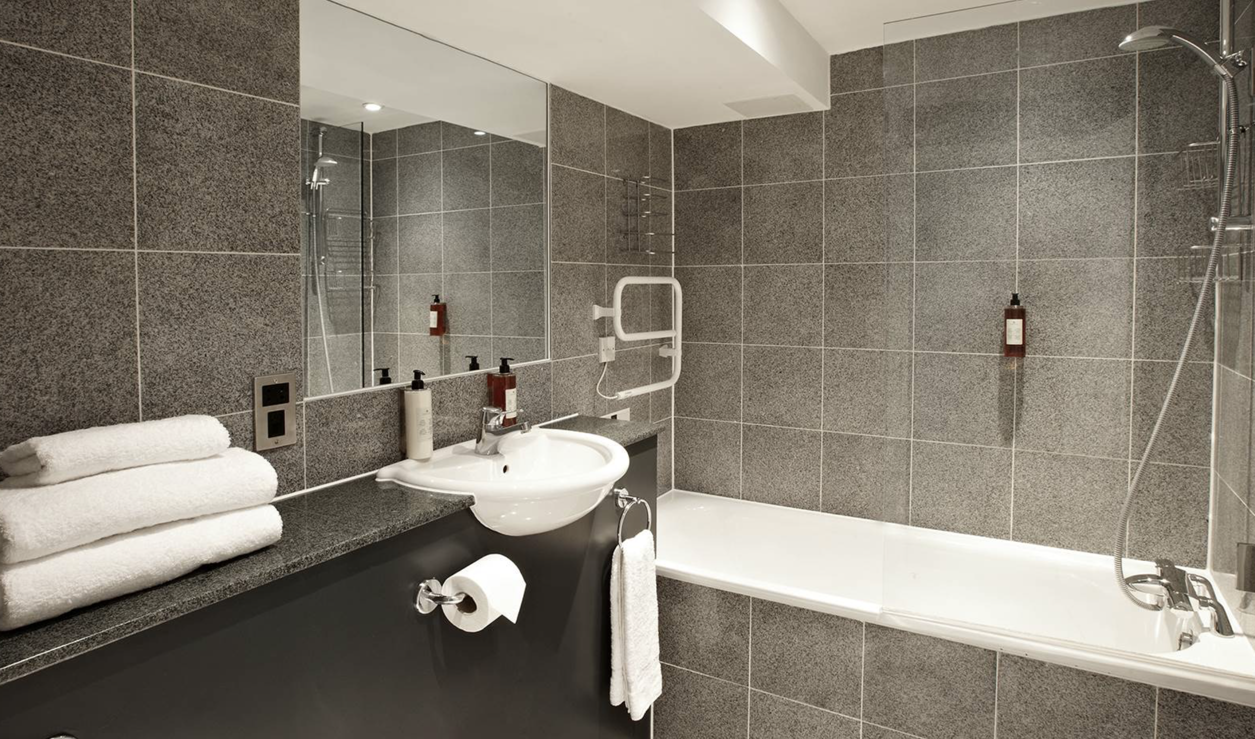 Marble-clad private bathrooms