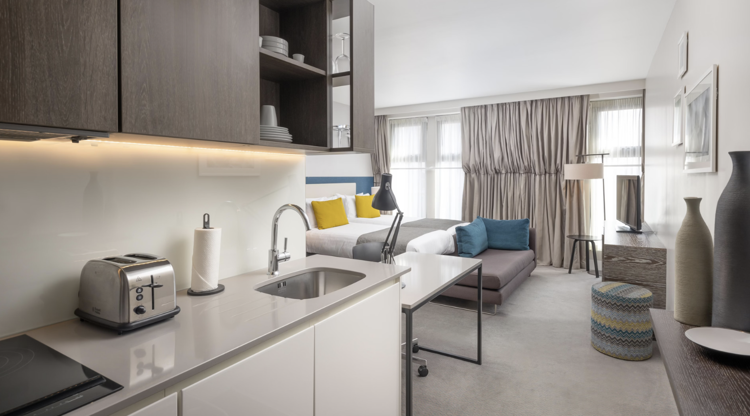 Complimentary buffet breakfast is included at Staybridge Suites Vauxhall – a contemporary aparthotel.  Studios and 1 bedroom apartments just 5 minutes’ walk from station. Excellent facilities for the discerning business traveller including daily cleaning, gym and high speed WiFi. Highly recommended by Go London. Perfect for corporate and relocation guests.